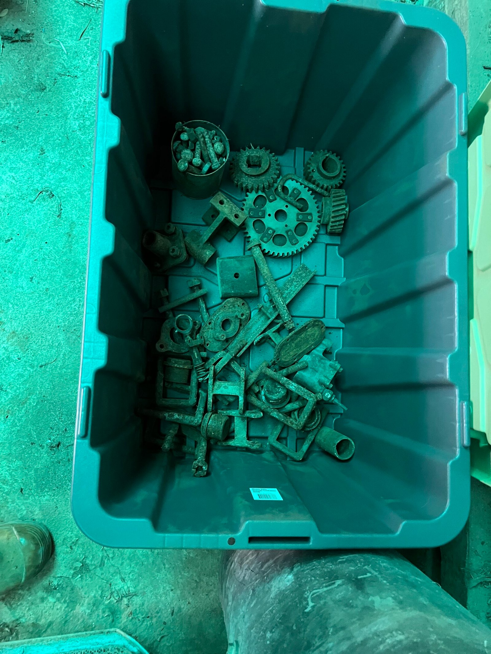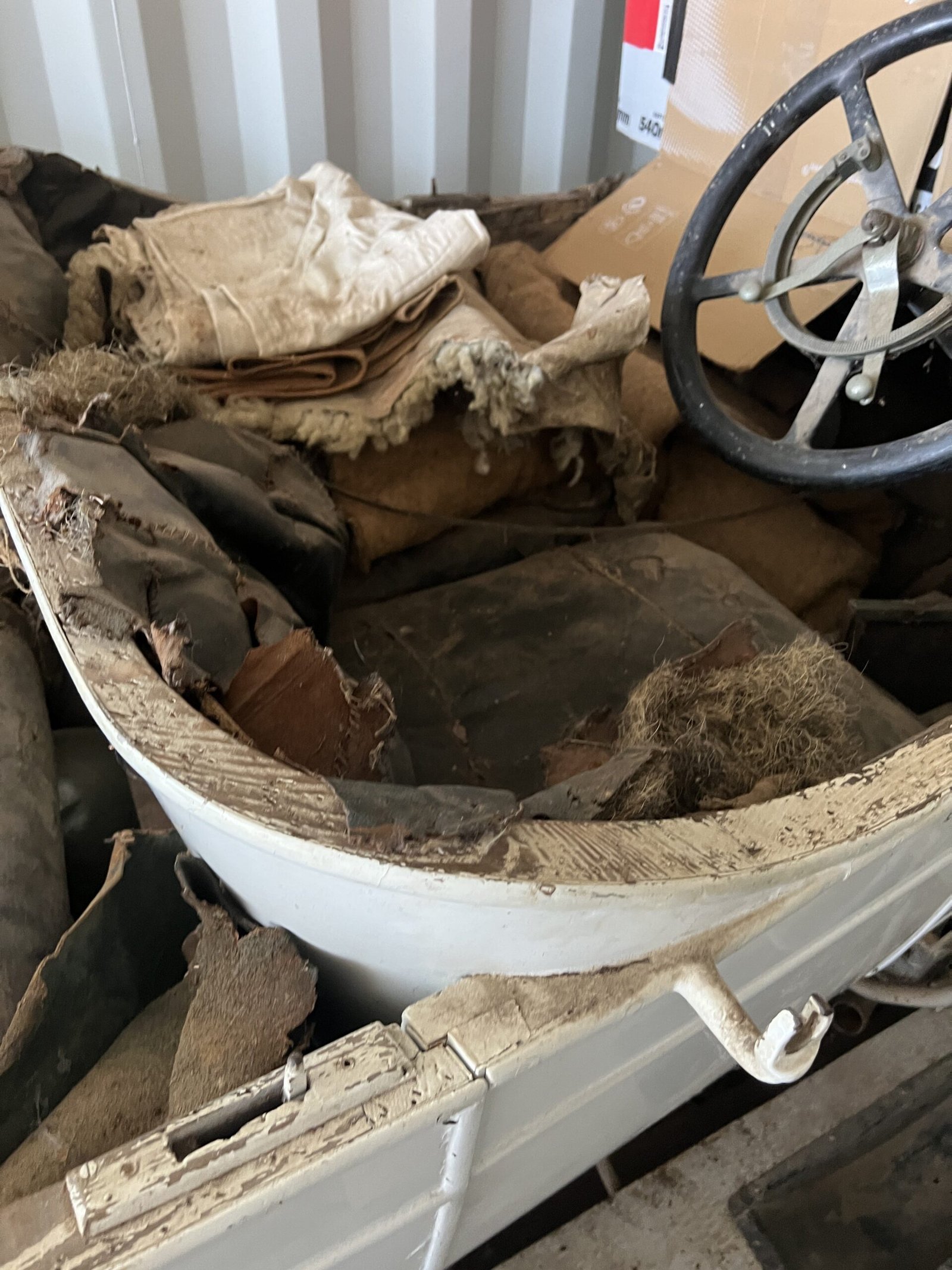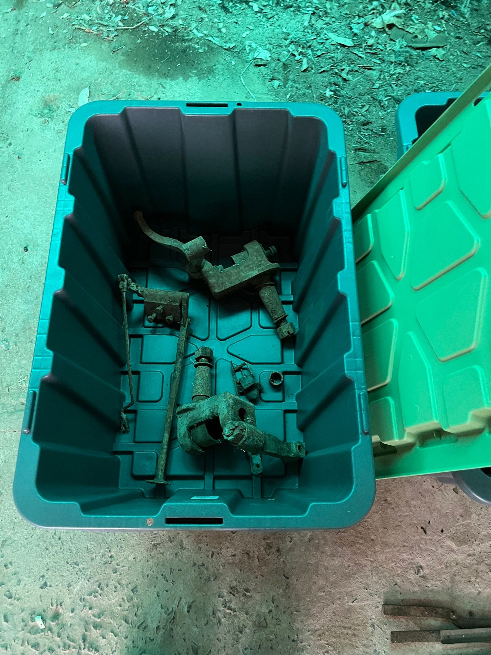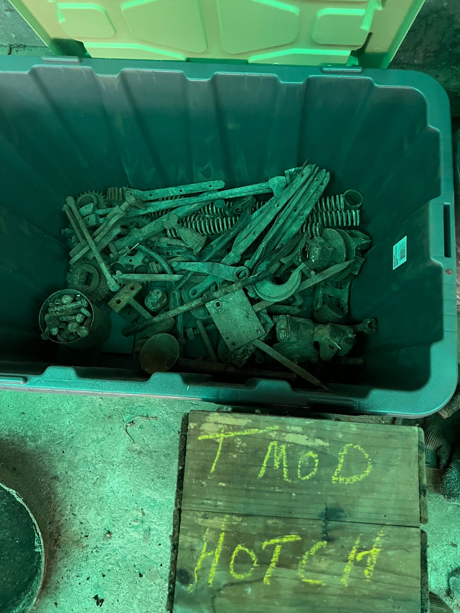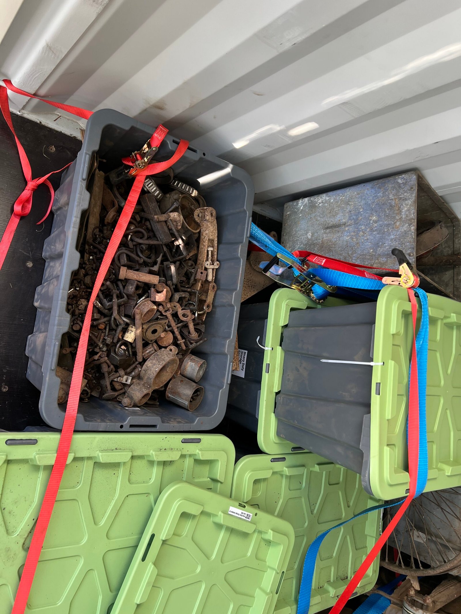A selection of photos relating to loading the Hotchkiss Parts into the container for shipping to the new owner. Many photos are duplicated for different focus or light angles. No specific order just taken over a 3 day period in February 2026.